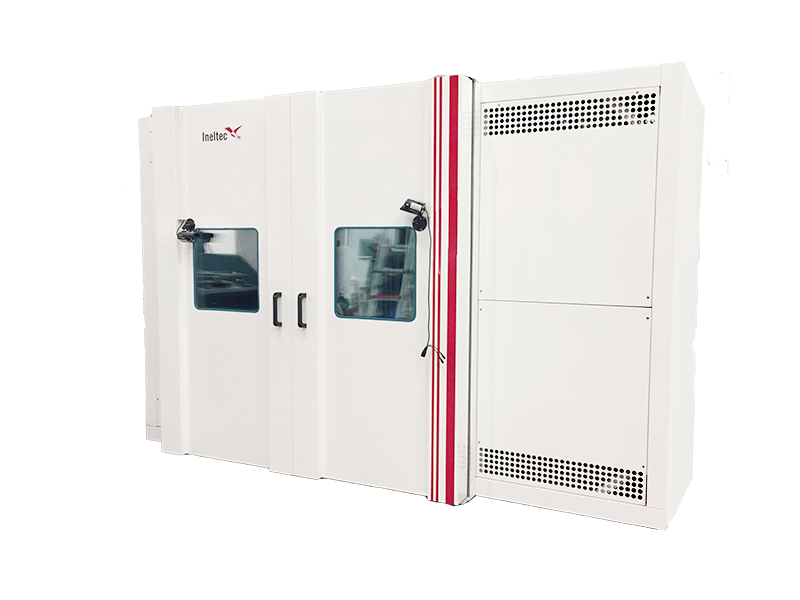 Banco de ensayo de choque térmico combinado con una cámara climática para la realización de ensayos en radiadores e intercambiadores. Combina aire/líquido y permite controlar la temperatura ambiente.