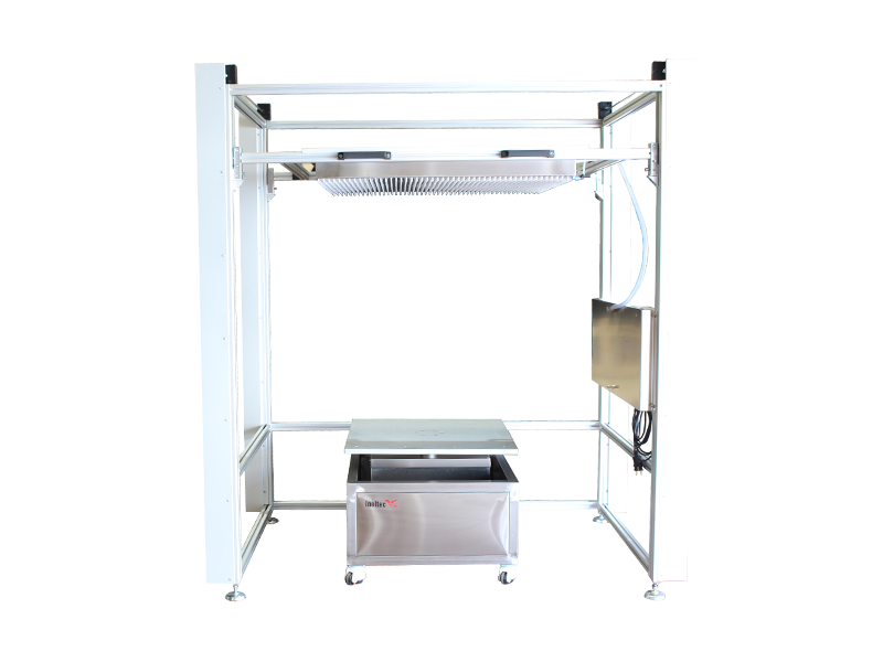 El equipo de goteo realiza ensayos para comprobar el grado de protección contra la lluvia que tiene una muestra, normalmente piezas estancas que permanecerán en la intemperie, según normativa IEC 60529.